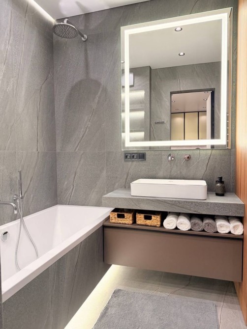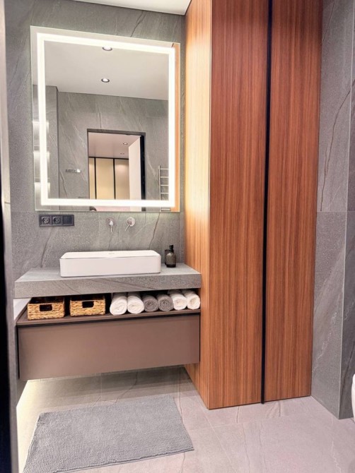 В квартире выполнен премиальный дизайнерский ремонт с использованием качественных материалов и продуманных решений.