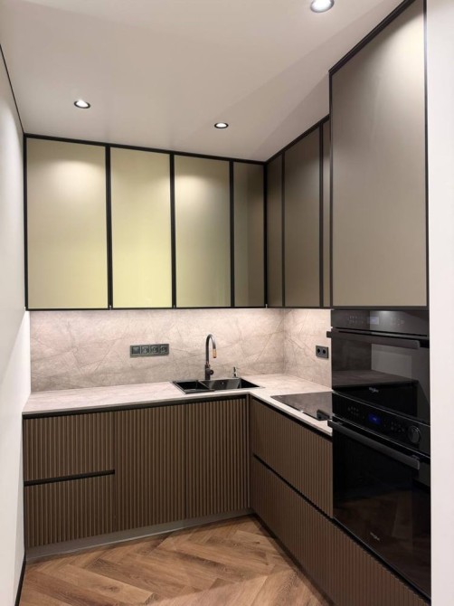 • Крашеные МДФ-фасады + стеклянные фасады