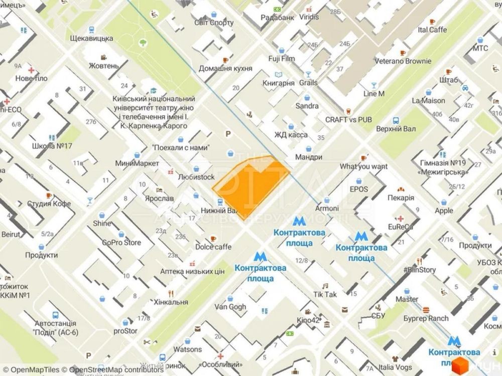 Старий район Подолу - це місце з дуже розвиненою інфраструктурою. Поблизу є безліч супермаркетів, магазинів, а на самій Контрактовій площі часто проводять фестивалі і влаштовують фудкорти. У вільний час можна відвідати театр, сходити в кіно, музей або ж просто прогулятися по Андріївському узвозу. У двадцяти хвилинах ходьби знаходиться набережна і Поштова площа.