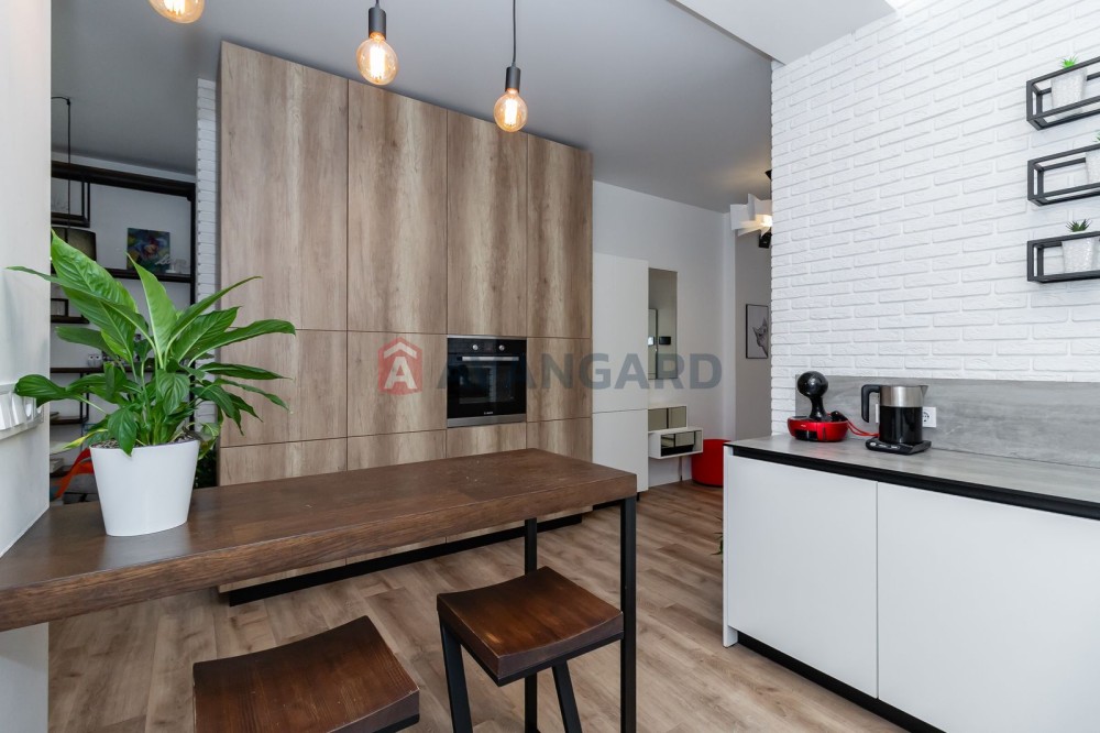 The design is thought out to the smallest detail: soft colors, high-quality materials, modern lighting. The kitchen-studio is fully equipped with Bosch and ERGO appliances.
