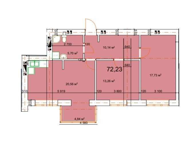 • Загальна площа 72.23 м2