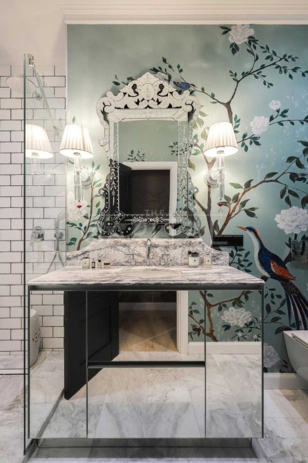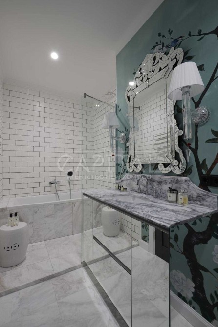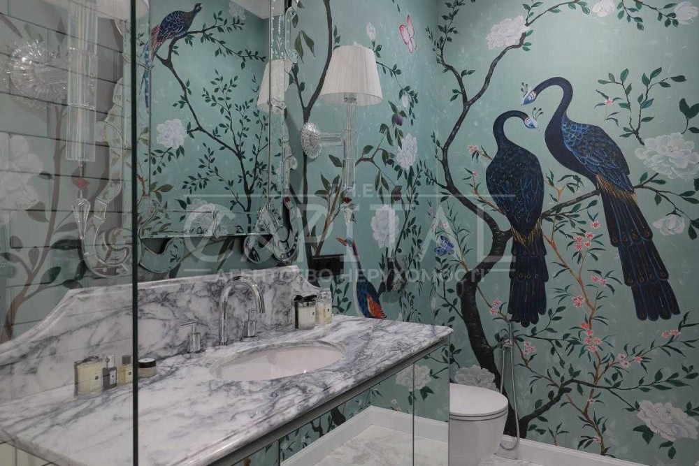 Авторський ремонт із використанням преміальних матеріалів: натуральний мармур, травертин, паркет.