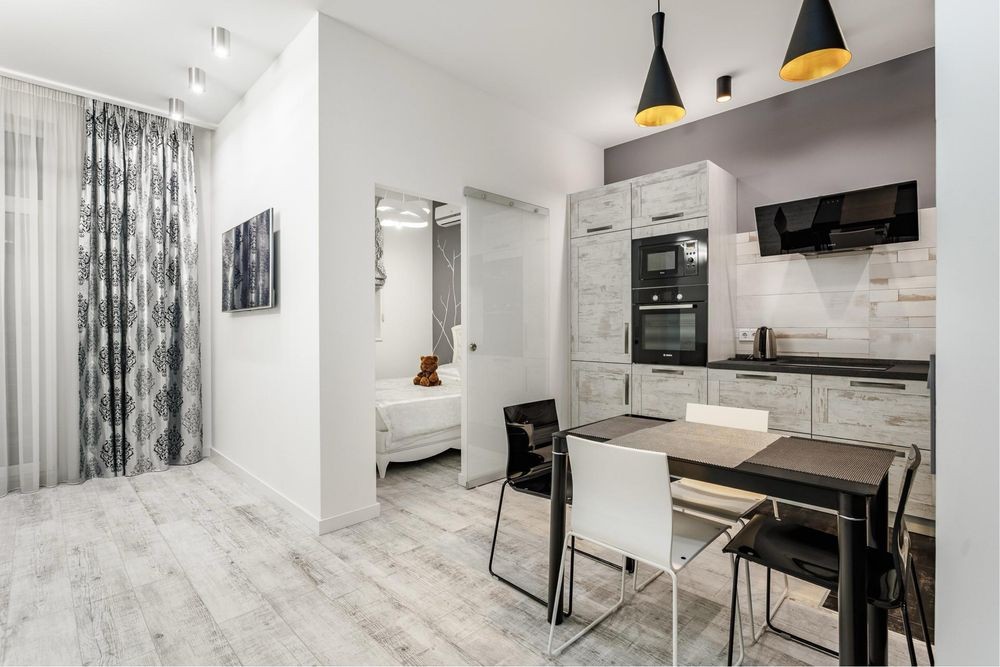 Стильна квартира в ЖК Французський квартал з функціональним плануванням, в якій не проживали, ремонт в ідеальному стані. Укомплектована повністю всім необхідним. Кухня-студія з вихідом на балкон, окрема спальня, гардеробна кімната.