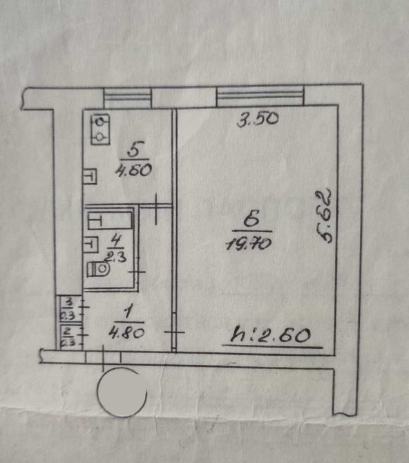 • Площа кухні 5 м2