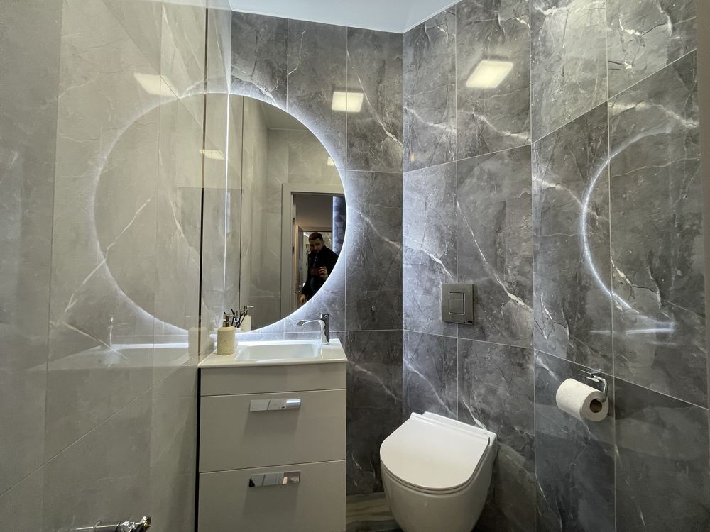 • уся сантехніка з прихованим монтажем