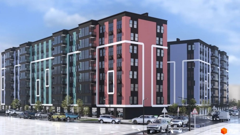 8-ми поверховий будинок 1 поверх комерція та 7 житлових поверхів.
