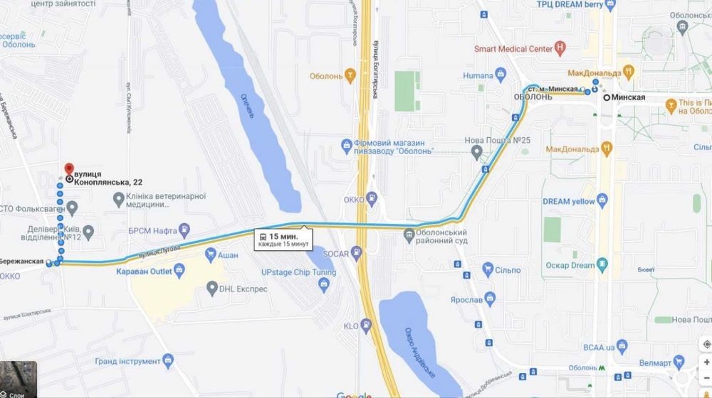 • До метро Мінська або Оболонь — близько 7 хвилин транспортом
