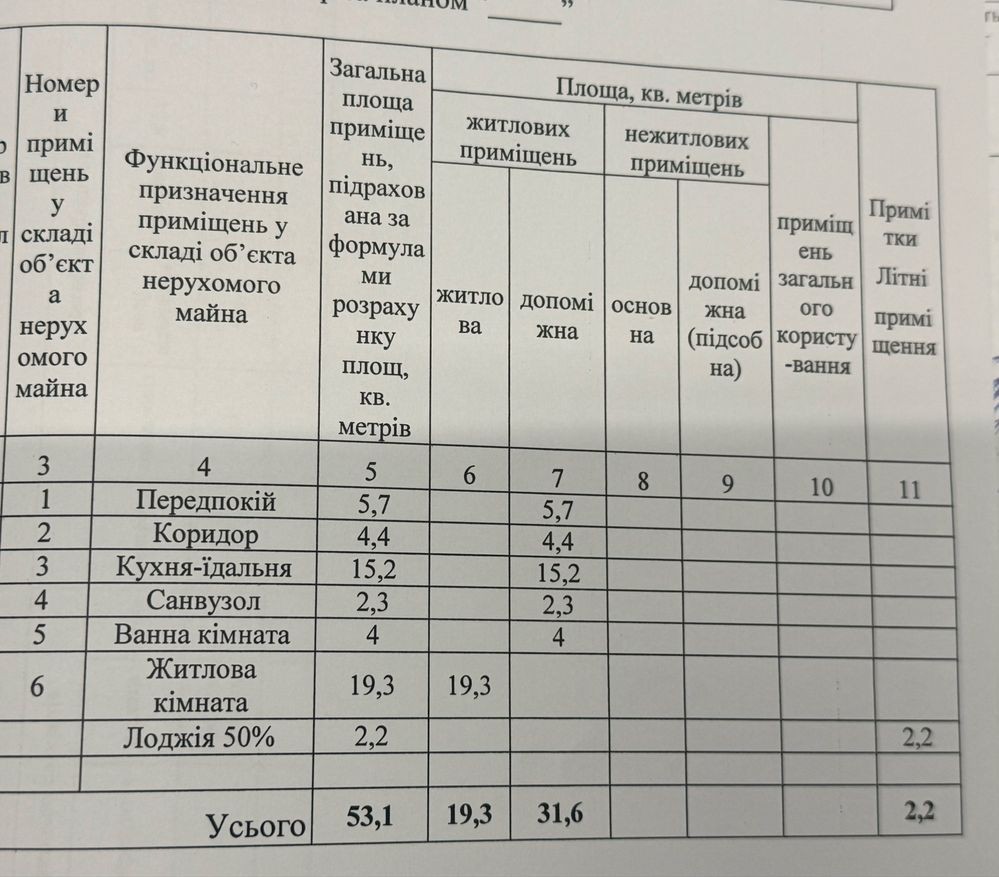 Загальна площа — 53,1 м².