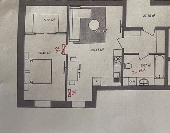 - велика кухня студія 24,5м2