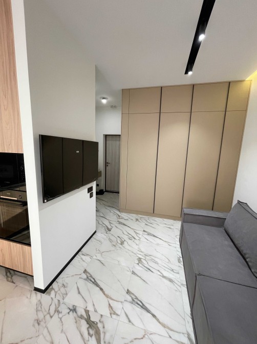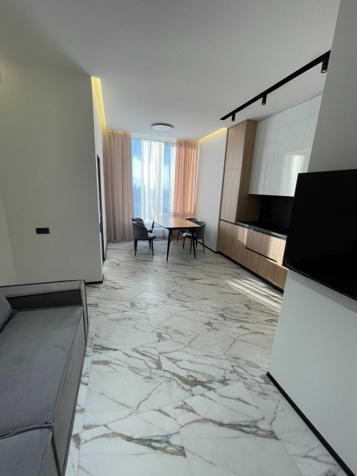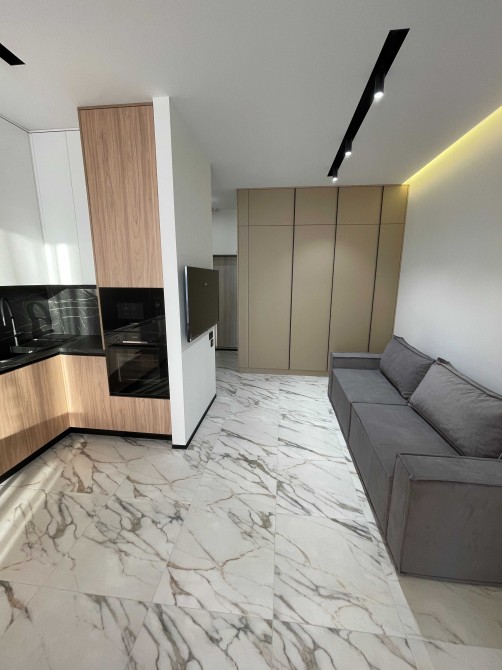Кухня-вітальня з обідньою зоною та зоною відпочинку . Техніка Bosh, Gorenie, Samsung: вбудований холодильник, духова шафа, мікрохвильова піч, індукційна плита, посудомийна машина, витяжка. Диван, телевізор, велика шафа з пральною та сушильною машинами.