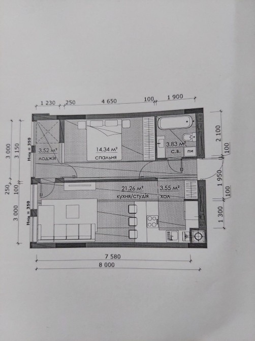 • Площа кухні 21 м2