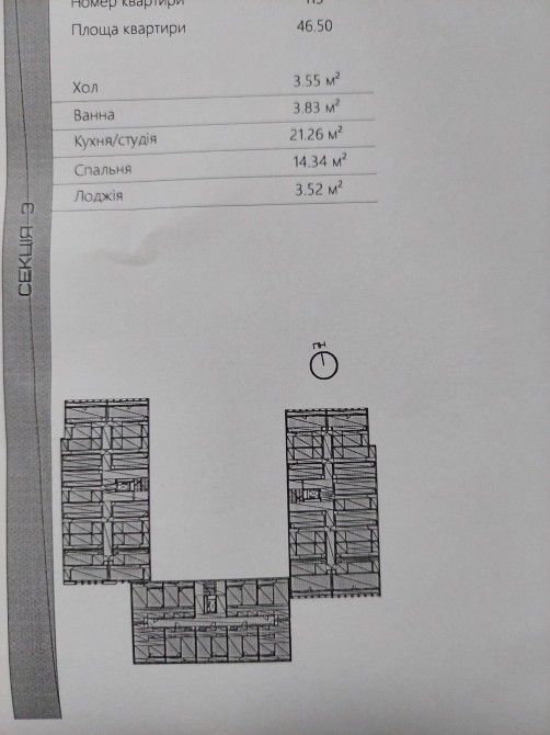 Площа квартири 46,5 м2 з великою кухнею вітальною площею 21 м2. Знаходиться на 2 поверсі з 9, вікна на західну сторону.