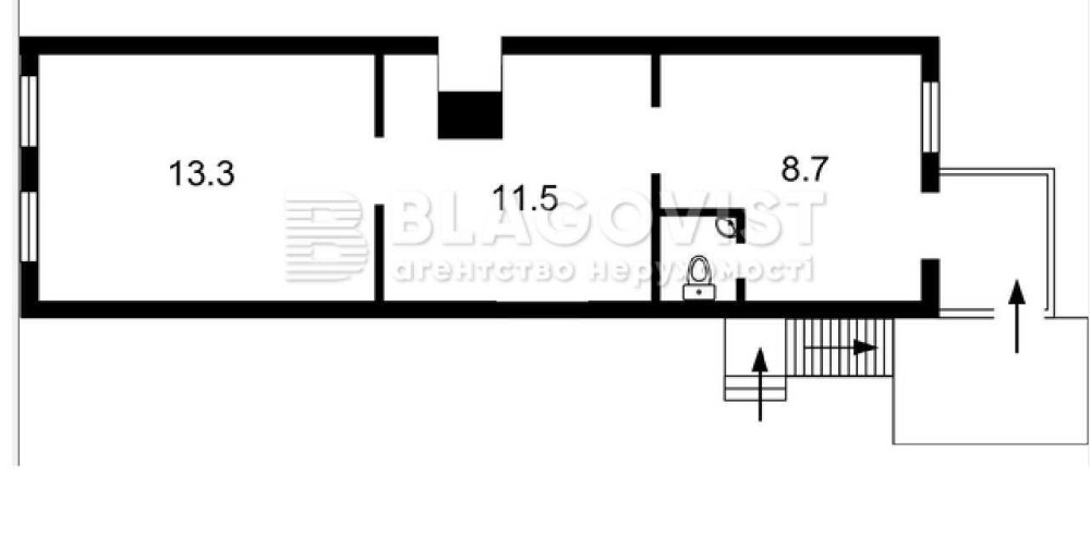 2-й поверх, площа: 36/14/8; Терміновий продаж: по документам квартира, але з окремим входом. Можна перевести в нежитлове приміщення під будь-який вид діяльності, потребує ремонту. Усі комунікації централізовані (газ по лічильнику, світло, вода, батареї). Поруч метро Вокзальна, Університет, цирк, універмаг Україна. Ціна: 44 000 USD