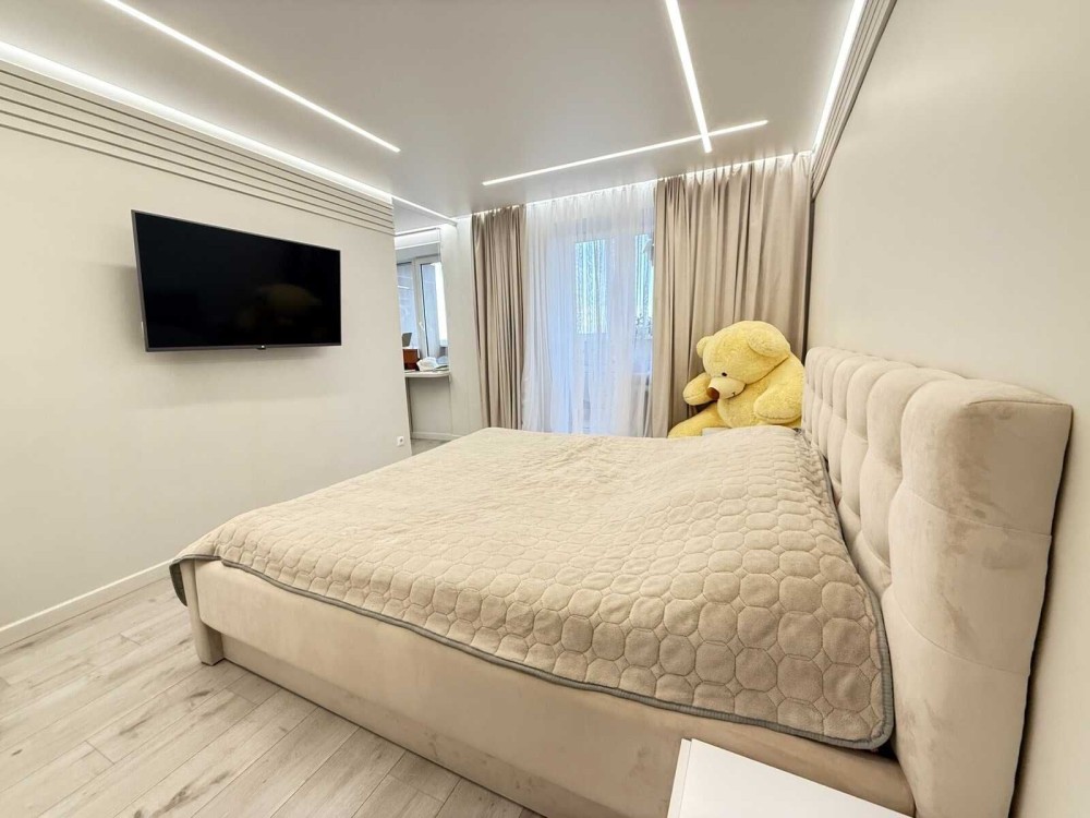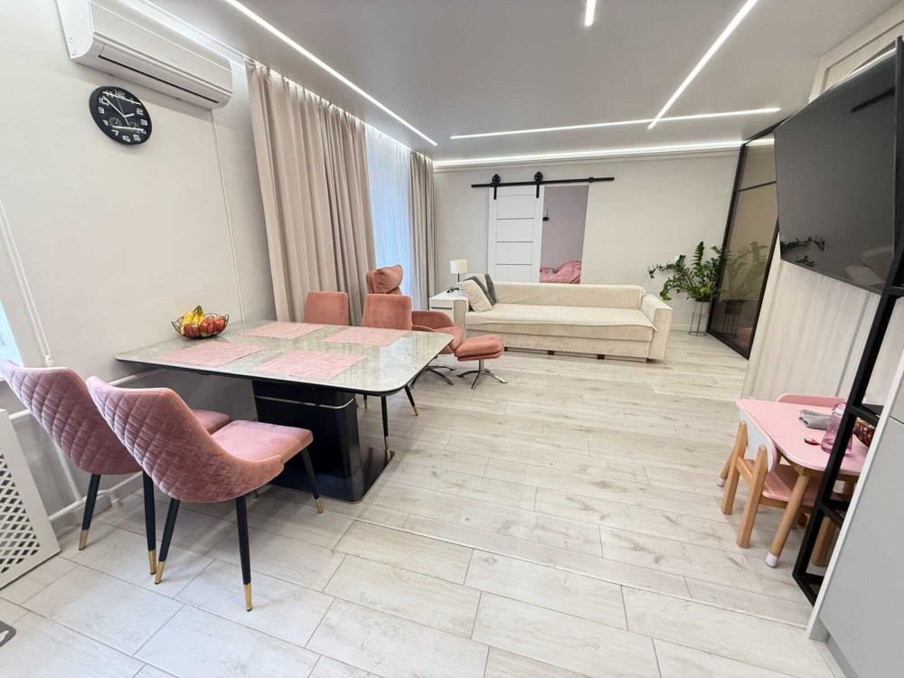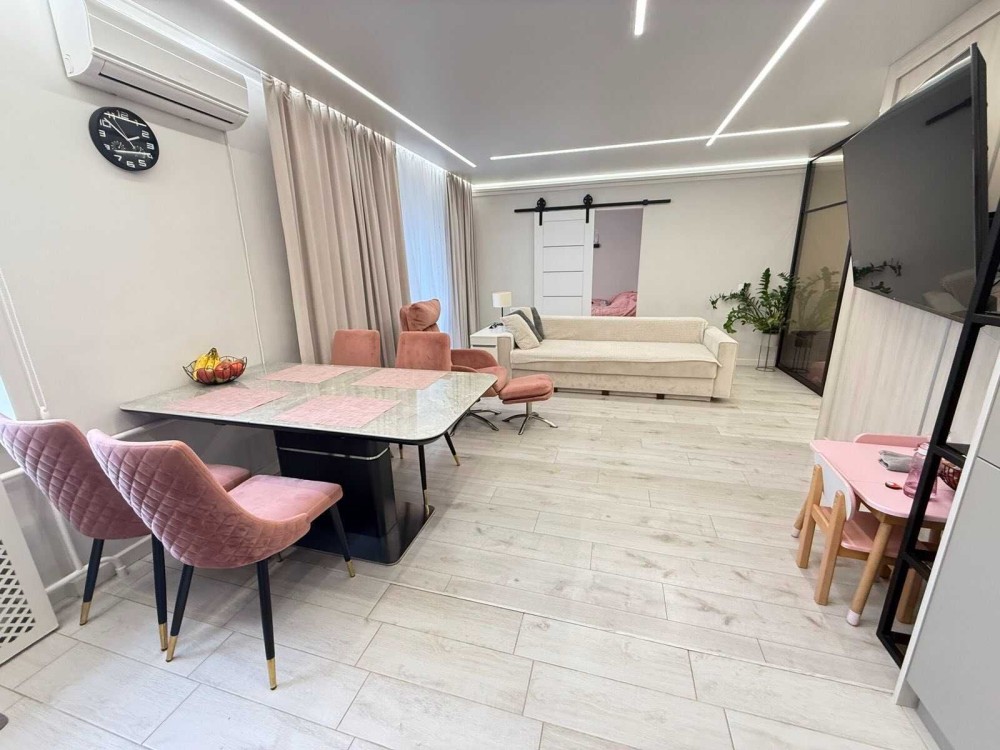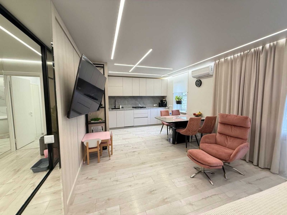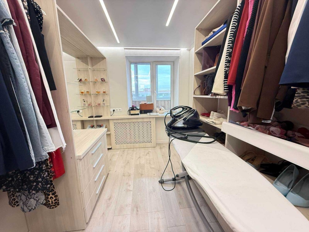 Продається простора квартира з дизайнерським ремонтом, повністю перепланована з 4-кімнатної. Планування надзвичайно раціональне та зручне: є дві спальні, одна з яких обладнана великою гардеробною, а також простора кухня-вітальня, що стала справжнім серцем оселі.