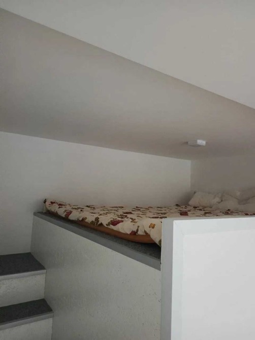 ️ Нестандартне планування: у кімнаті реалізовано другий рівень для спальної зони, куди ведуть стильні дерев'яні сходи — простір розділений грамотно та зі смаком.
