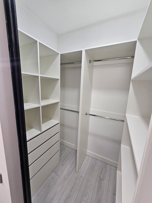 ° Велика гардеробна та нішa у ліжку — максимум зберігання без зайвої метушні.