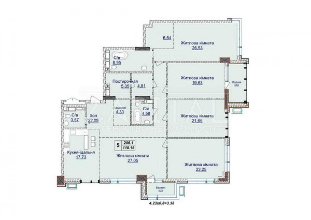 • Площа кухні 17.8 м2