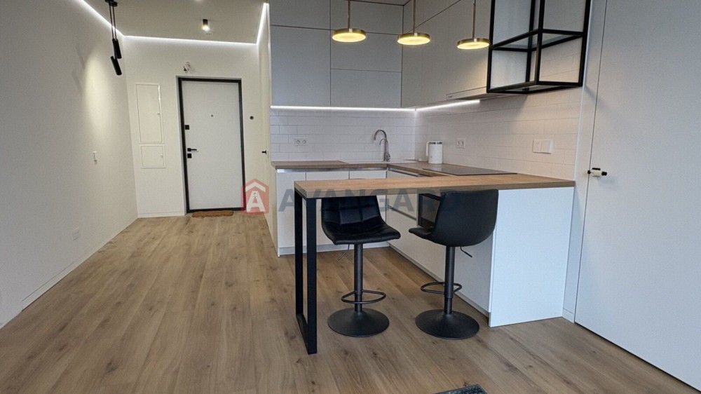 У квартирі кухня-вітальня, спальня, суміжний с/в, велика лоджія.