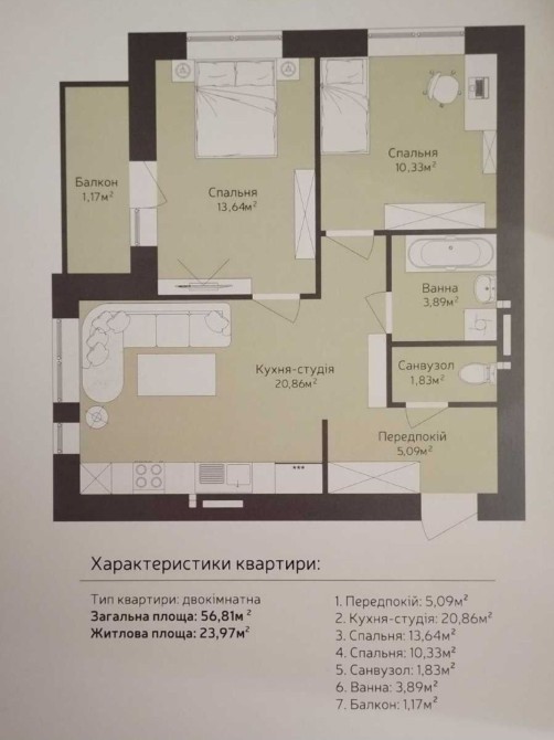 • Загальна площа 57 м2