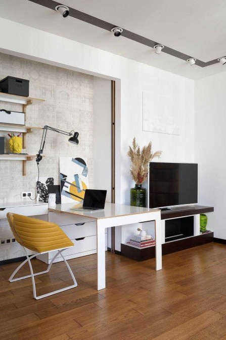 Планування квартири найвдаліше в комплексі, + вдосконалена дизайнером, є проєкт простого переобладнання кімнати у другу спальню.
