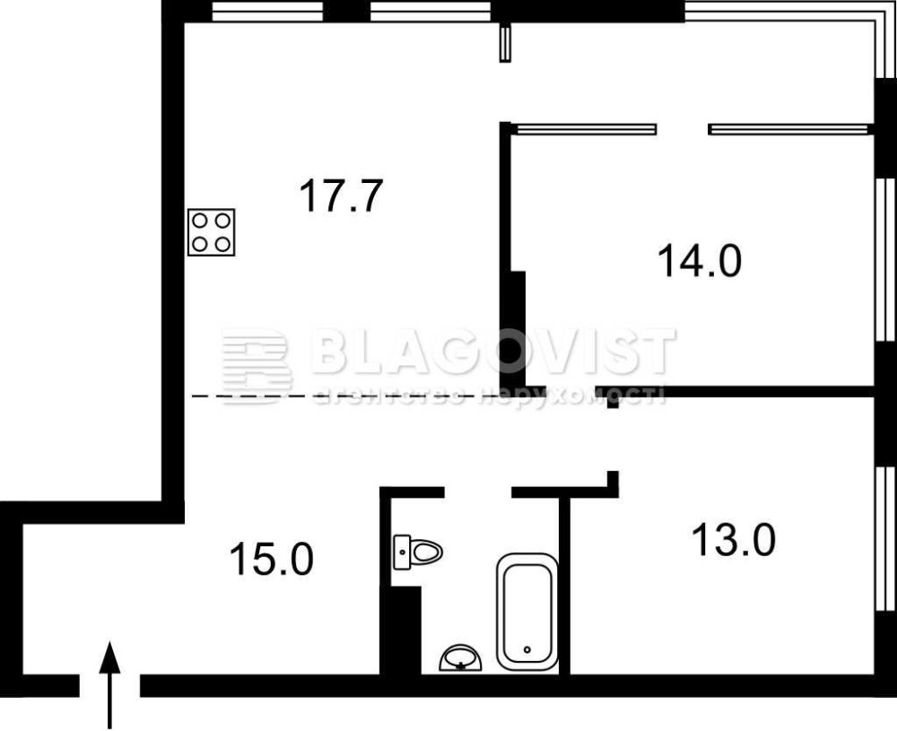 • Площа кухні 17.7 м2