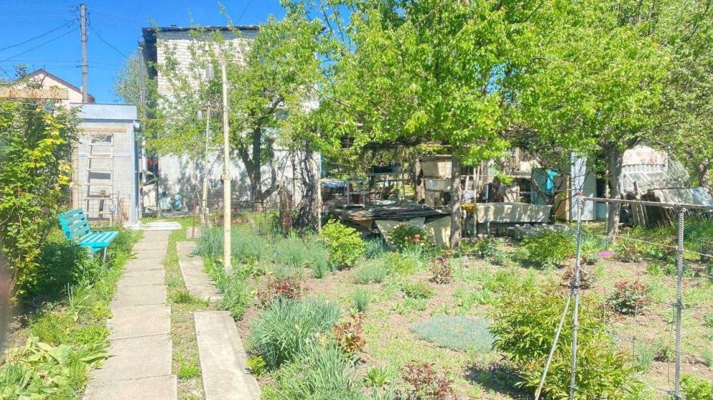 Простора та дуже доглянута ділянка з заїздом на подвір'я, садком, городом та виходом до пруда. Потенціал є для теплиць та господарства.