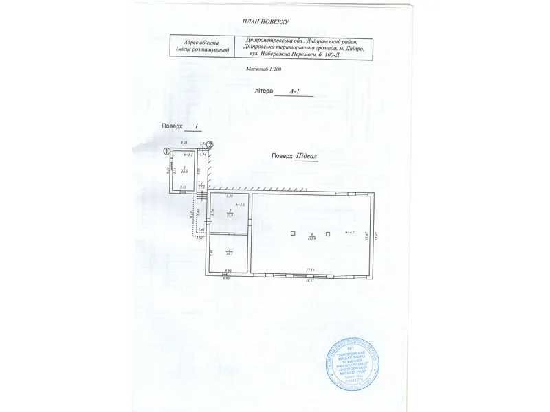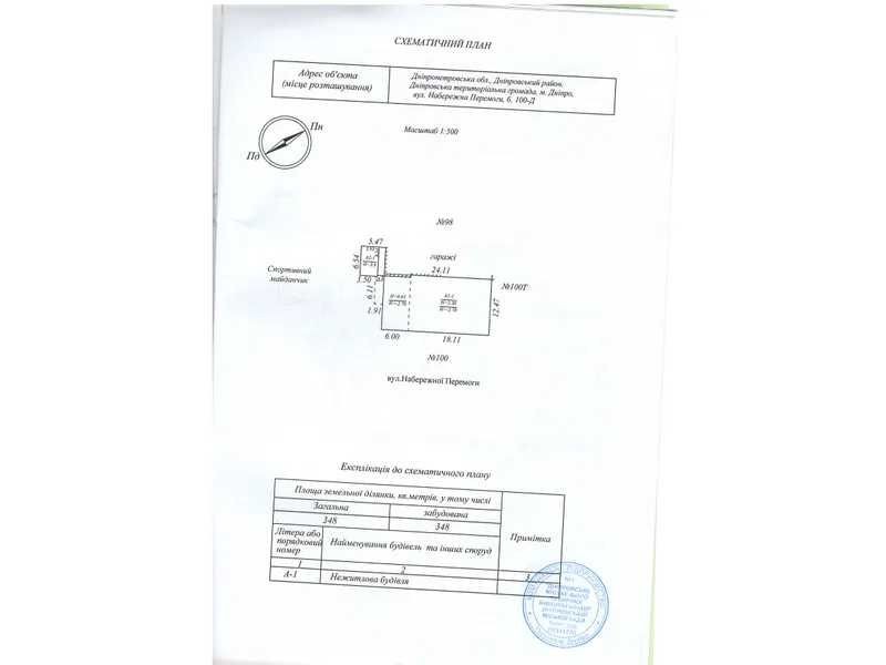 Нежитлова будівля літ. А-1 загальною площею 293,1 кв.м. яка складається: літ. А1-1 нежитлова будівля, А2-1 прибудова, а3 вхід, що розташована за адресою: м. Дніпро, вулиця Набережна Перемоги, будинок 100Д.
