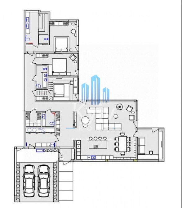 Виконано розведення теплої підлоги та систем водопостачання безшовними трубами Rehau, розведення всієї електрики та розумного будинку.