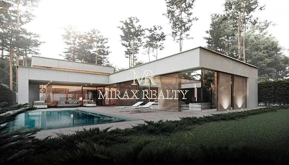 Продаж нового будинку 307 м2 з терасою, басейном, домашнім вуличним кінотеатром, на ділянці вікові сосни, Плюти, Конча-Заспа. Будинок збудований в 1 поверх за авторським проектом, навісні панелі HPL - Fundermax (Австрія), гарантія 50 років, безшовна конструкція фасадної плитки, що дихає. Товщина плити 6 мм, термоефективна панель, матеріал фасаду повністю екологічний. Площа скління житлової зони до 70%, безрамкові двокамерні вікна із сонцезахисним покриттям спеціально створені на заводі-виробника Reyners (Бельгія) під даний будинок. Зовнішня висувна система рафштор Manezh дозволяє створити потрібний рівень затемнення. Вітальня: друге світло та висота стелі 6 м, вітальня з'єднана з прихованим кабінетом, кухня, господарська майстер-спальня, 2 спальні з санвузлами. Кімната для персоналу + гостьова спальня. Система розумного будинку, система вентиляції з рекуперацією. Тераса: підлога, що підігрівається навколо басейну і на терасі. На ділянці 11 соток виконано ландшафтний дизайн, басейн (12х3, 5м) з підігрівом та протитечією, з лайнерним покриттям (для безпеки дітей). Комунікації: електроенергія – 20 кВт, газ – 10 куб/год, газогенератор – 15 кВт, свердловина, очищення води. В'їзна група: комфортної висоти паркан, безшумні автоматичні ворота, паркінг для 2 машин. Асфальтований під'їзд, комфортна транспортна доступність Старообухівською трасою, елітна частина Кончі-Заспи.