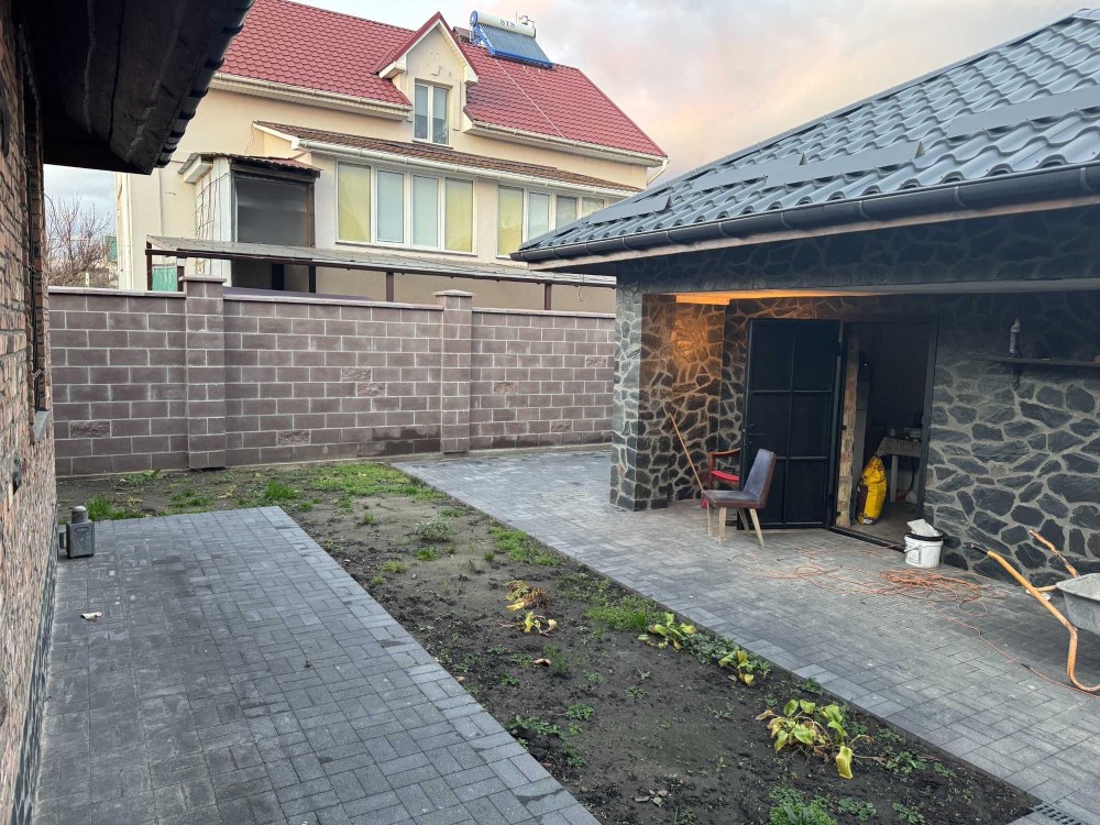 Ділянка правильної форми, 4,2 сотки , повністью огороджена парканом, ковані ворота і калітка. Зроблена якісна система відводу дощової води, якісна бруківка, підготовлені зони під газон, квіти, паркінг на 2 авто. Вулиця закрита, тому поруч біля будинку можна також паркуватись.