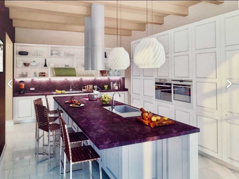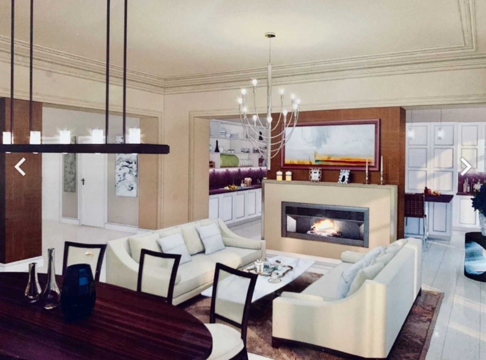 - Перший поверх: кухня-студія (італійська кухня, повністю готова), зал із каміном, санвузол, передпокій.