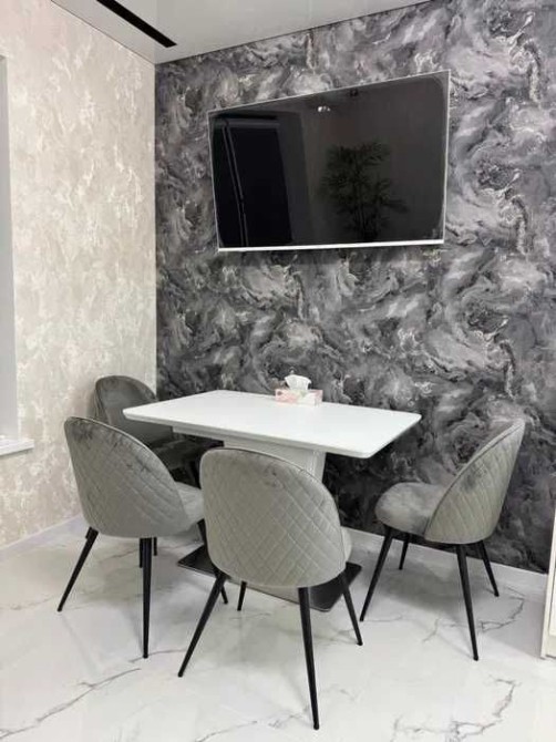 -обідній розкладний стіл та мʼякі стільці-крісла