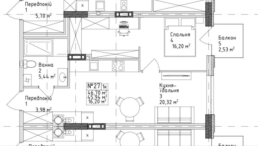 • Загальна площа 46.7 м2