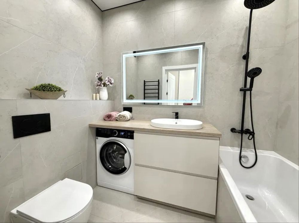 Якісна сантехніка, підсвітки, пральна машина, усе необхідне для комфортного життя.