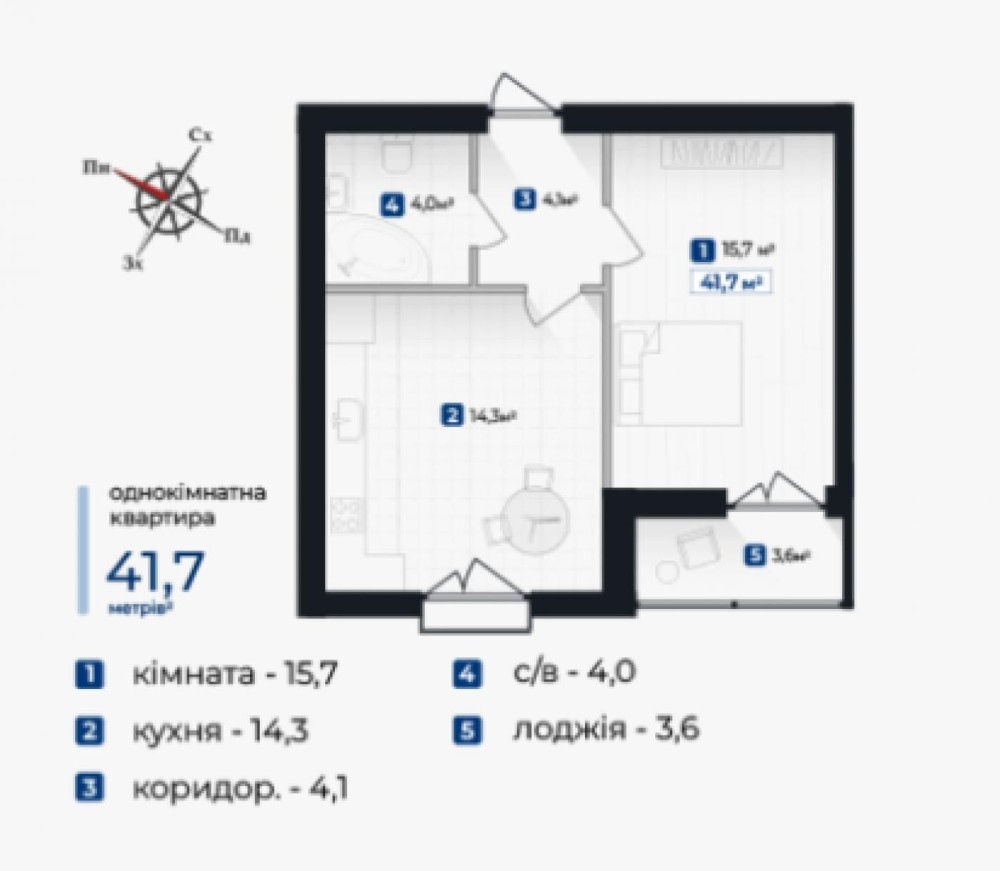 • Загальна площа 41 м2
