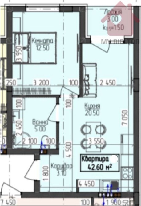• Загальна площа 42.6 м2