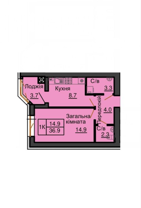 • Загальна площа 37 м2