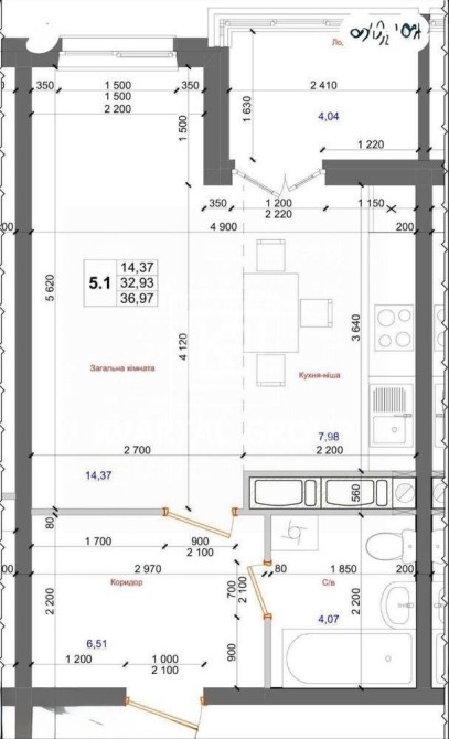 • Загальна площа 37 м2