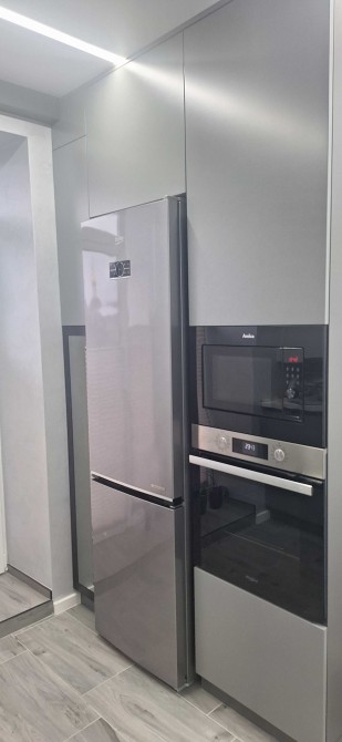 В квартирі встановлена кухня з вмонтованою технікою ( газова поверхня, електродухова шафа, мікрохвильова піч, витяжка, пральна машина), холодильник.