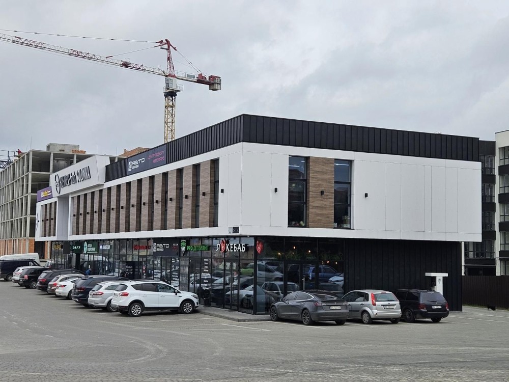 Поряд з будинком розташований торговий центр з продуктовим маркетом, аптекою, відділенням Нової пошти, кав'ярня та іншими магазинами.