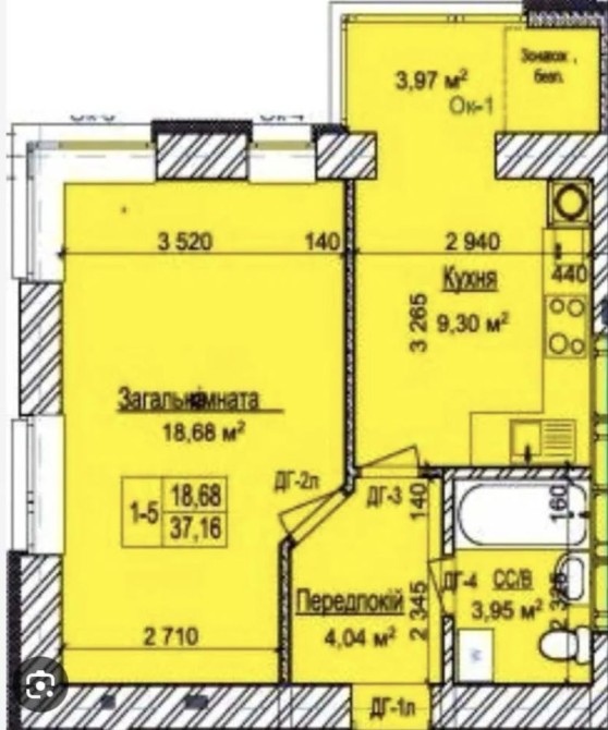 • Загальна площа 39.4 м2