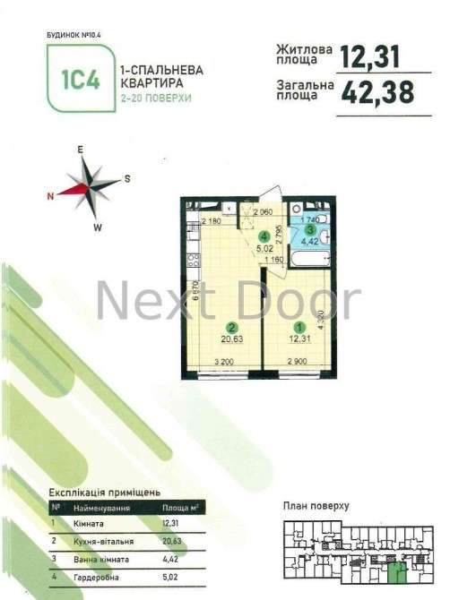 • Загальна площа 42.38 м2