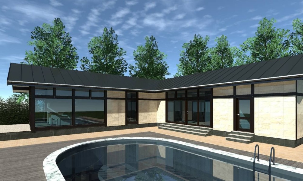 На продаж - одноповерховий дизайнерський будинок площею 100 м² на 14 сотках приватної території, розташований у мальовничому місці поруч із лісом та озером,недалеко від Києва.