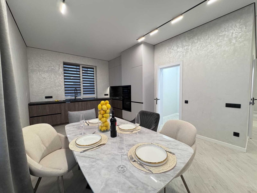 Продаж одноповерхового будинку з дизайнерським ремонтом. Будинок розташований у межах міста, збудований на 4 сотках землі, загальною площею 95 м². У плануванні передбачено три спальні кімнати, простора кухня-вітальня з виходом на терасу, котельня та два санвузли. Зроблено сучасний дизайнерський ремонт у світлих відтінках, тепла підлога, будинок повністю укомплектований сучасними меблями та технікою, включно з обідньою зоною. Комунікації: світло, газ, свердловина та септик. Чудовий варіант для комфортного життя в місті. Запрошуємо на перегляд.