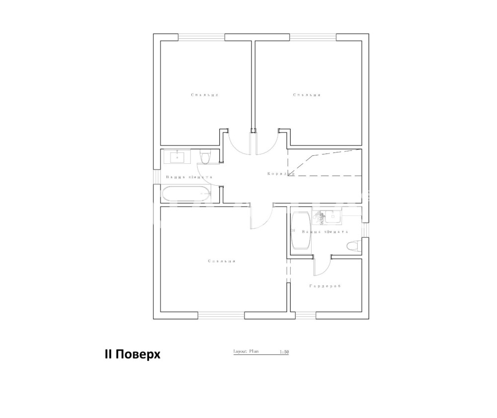 • На другому поверсі – три ізольовані кімнати, ще один санвузол, а також вихід на терасу з однієї з кімнат.