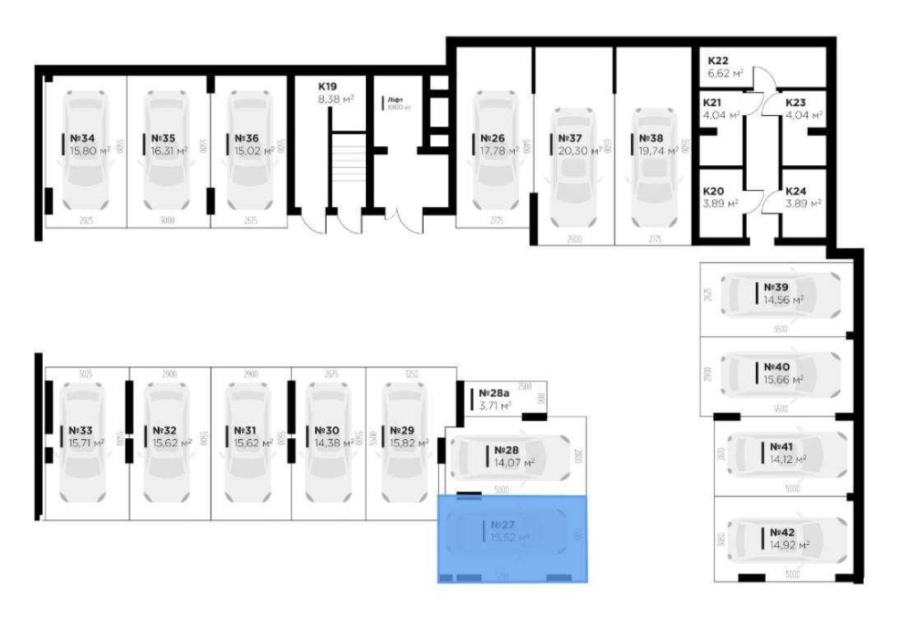 Площа паркомісця - 15,5м2, є можливість розмістити зарядку для електромобіля. Поряд є кладова (окремо можна викупити). Місце просторе і легко запаркуватись, поряд ліфт та сходова.