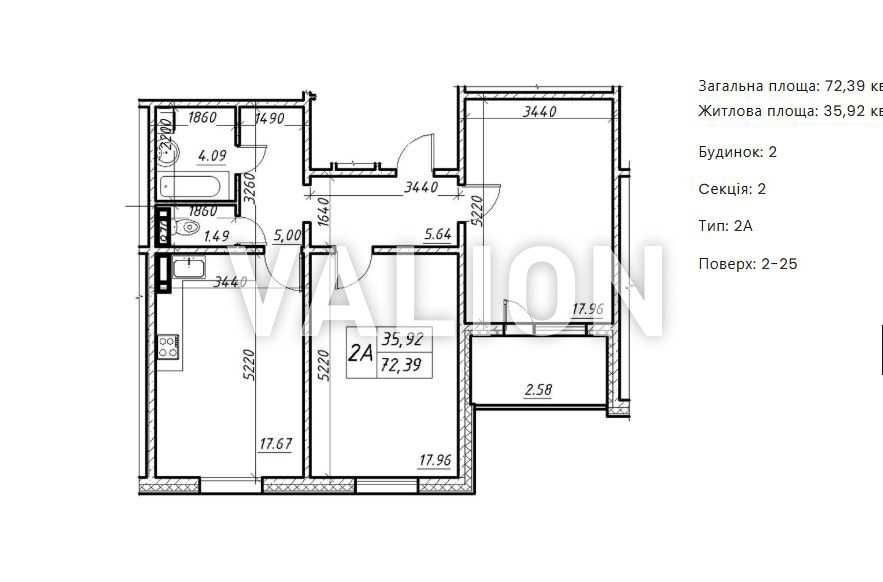 • Загальна площа 72.4 м2