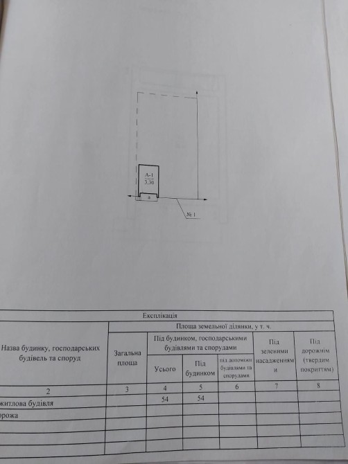 • Площа під будівлею: 54 м²