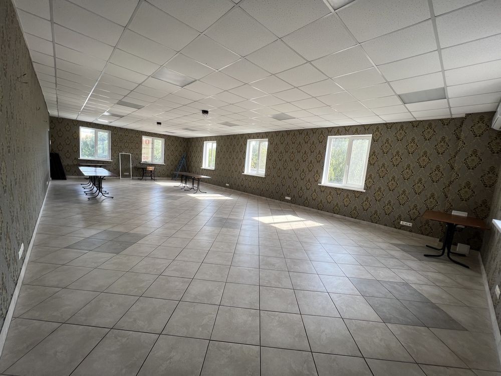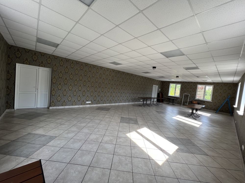 Продаж торгового приміщення, площа 1303 м2, з ремонтом, стоянка, сигналізація охорона та пожежна, можна під любий вид бізнесу, 1-поверхова. Наявні усі комунікації: електроенергія до 0,5 МВт, вода, котельня на твердопаливних котлах. Висота стелі: 3,0 м Стан: відмінний Матеріал стін: цегла