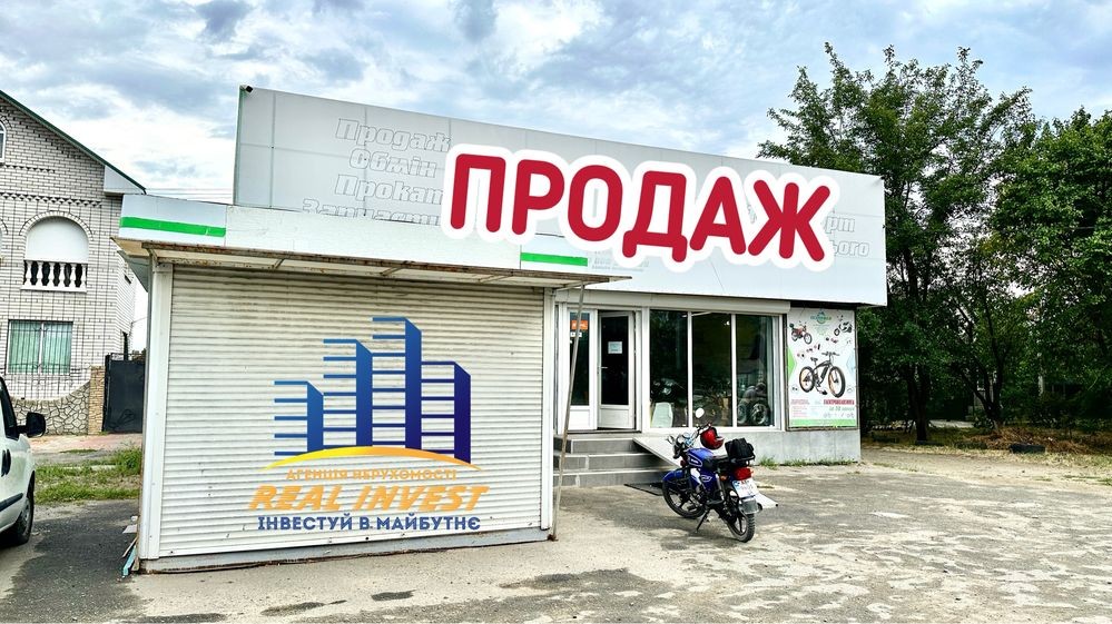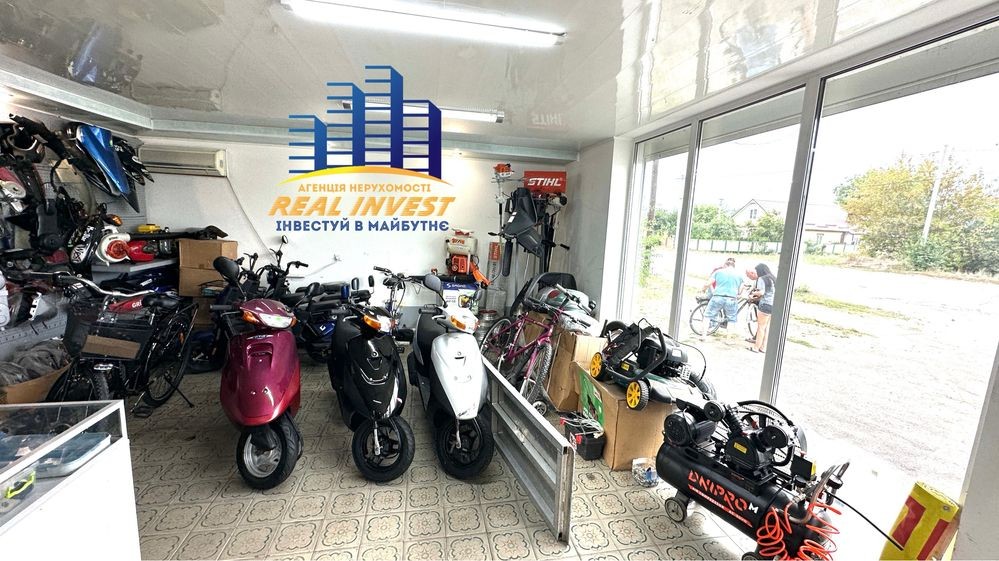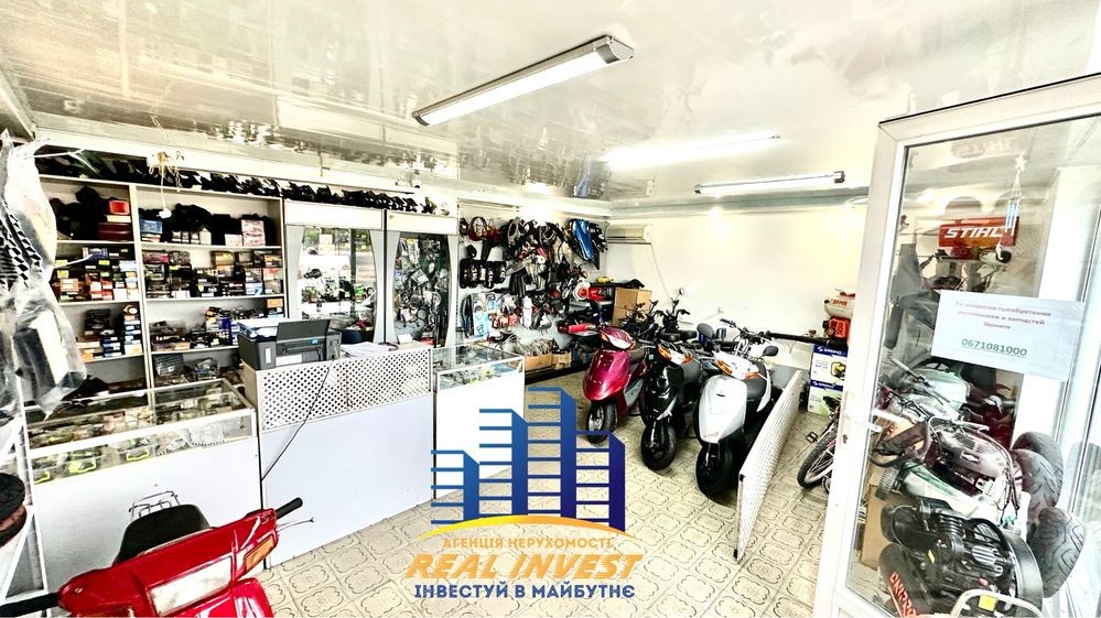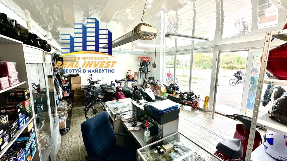 * Продаж разом з бізнесом: Розглядається продаж приміщення з діючим бізнесом — «Магазин веломототоварів». Це включає: